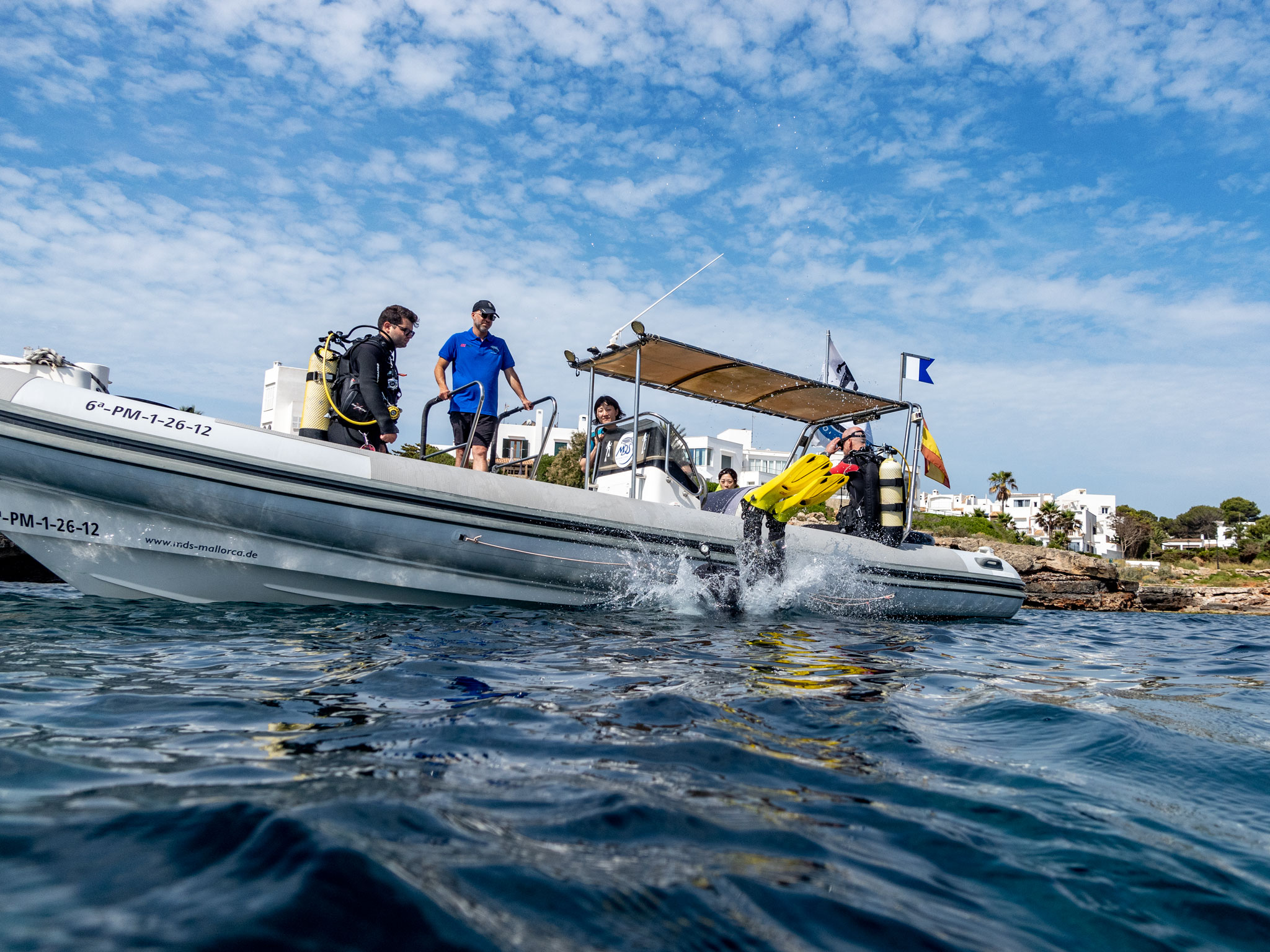 After registering on site in the office, you stow your valuables in our lockable lockers and then receive the equipment you need. After you have assembled your equipment, the dive briefing takes place. Our golf cart or tractor will take care of transporting your equipment towards the water. A few steps after the buddy check has taken place, the crystal clear water of Mallorca awaits you. Our speedboat the Poco Loco will pick you up directly in the bay for an unforgettable dive.